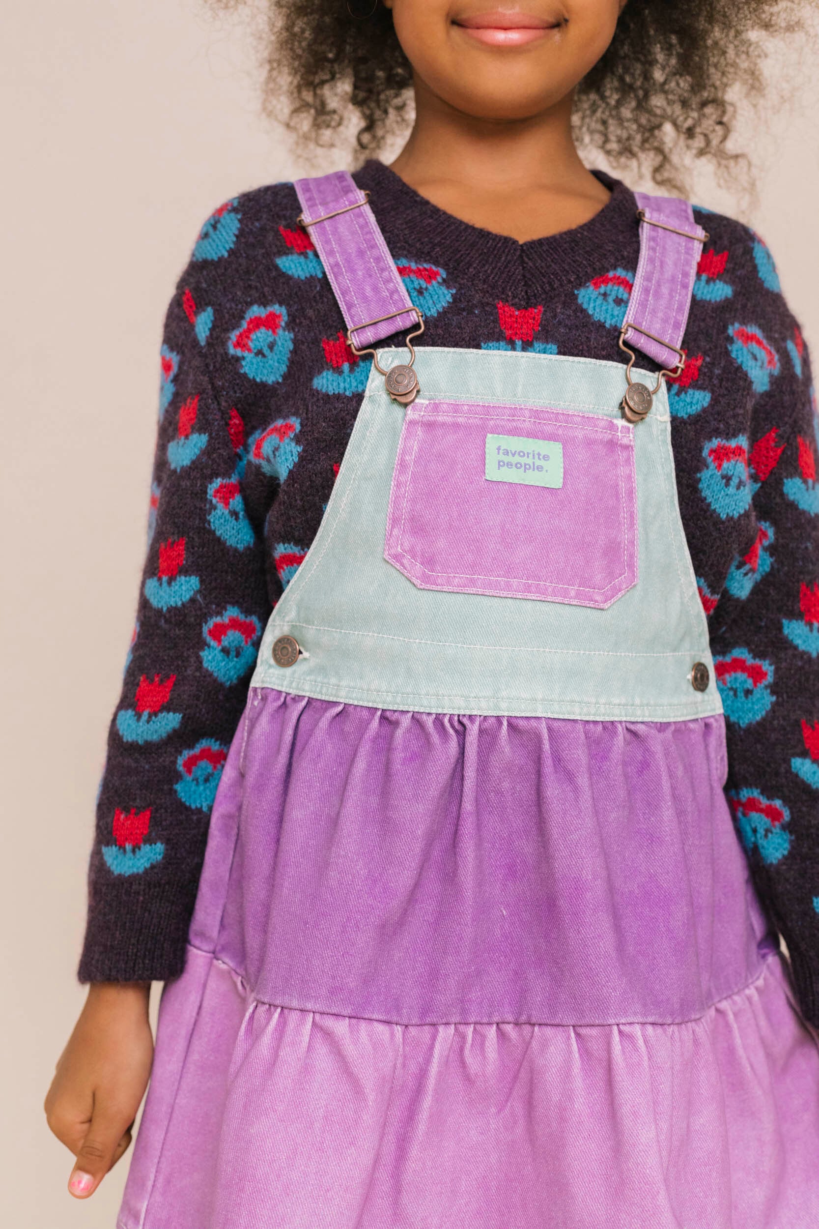 カラフルな色使いで毎日を明るく照らす、スカート型オーバオールです。